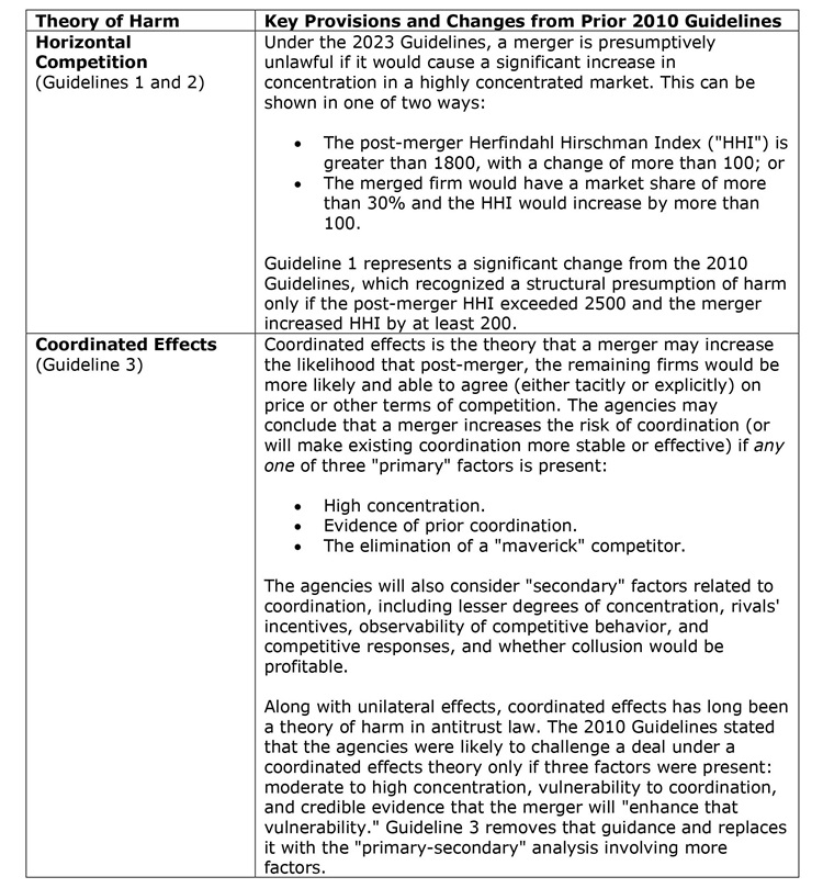 - A lower threshold for market shares that result in a "structural" presumption of harm, as compared to the 2010 Guidelines.