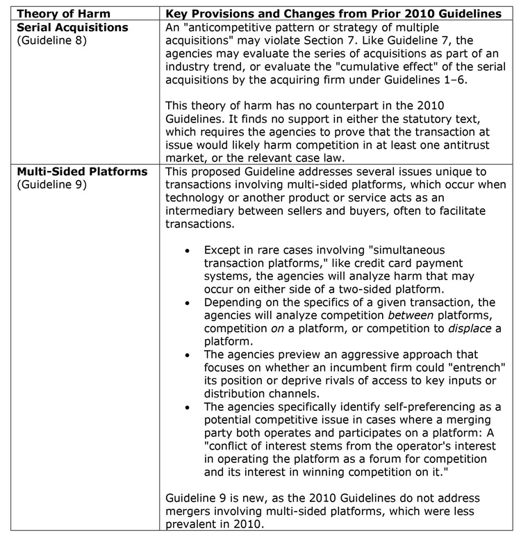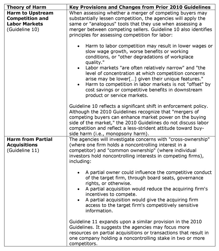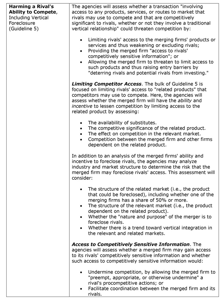 Like the July draft, the final guidelines represent a significant departure from earlier guidance and recent case law, instead relying on dated legal precedents (largely from the 1960s). Although the agencies made a number of revisions to the July draft, the fundamental takeaways remain the same. Key provisions include: