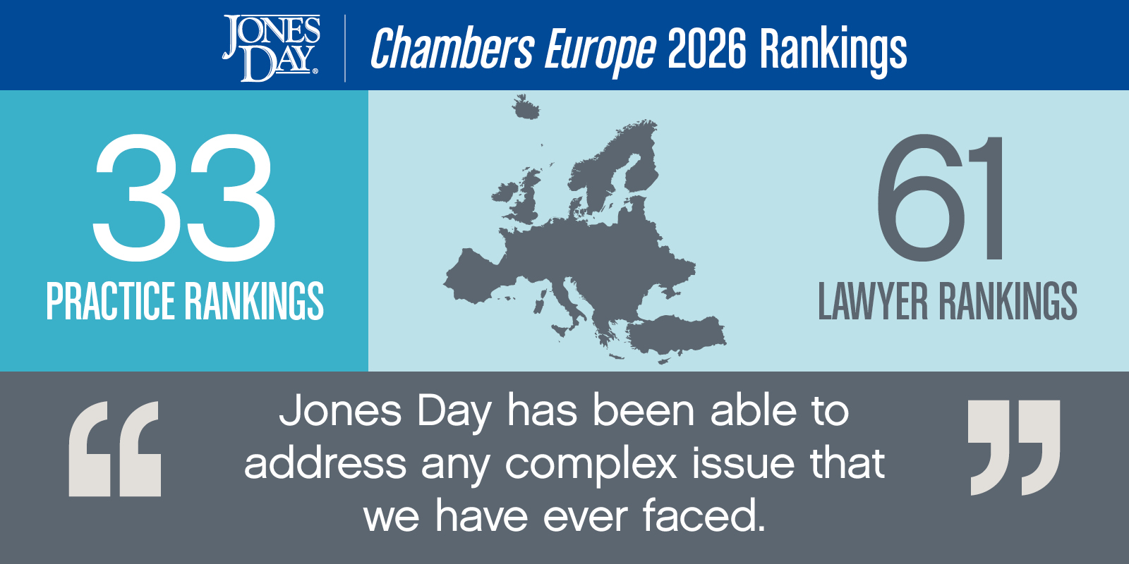 The 2026 edition of Chambers Europe: The World's Leading Lawyers for Business recognizes Jones Day with 33 practice rankings and 61 lawyer rankings.